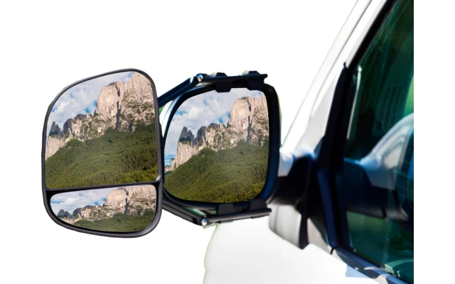 Specchio aggiuntivo per l’uso del rimorchio. Da attaccare agli specchietti standard dell’auto.