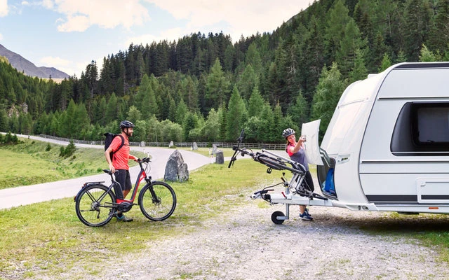 Con il terzo binario opzionale e il morsetto per bicicletta, il portapacchi può contenere fino a 3 biciclette.